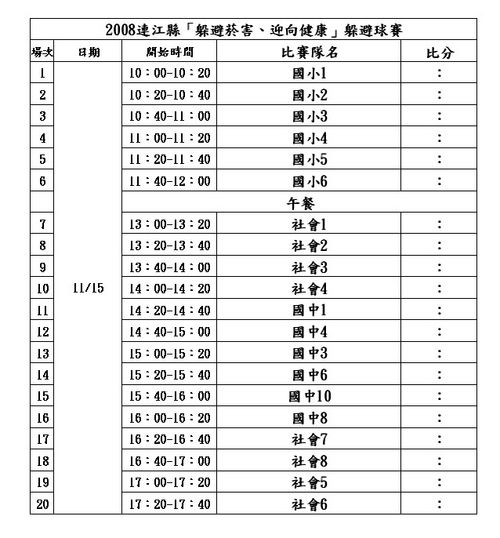 附加Excel文件表: matsu-cf2859de245a9711944df2ca2ff3412c.xls11月15日賽程順序表