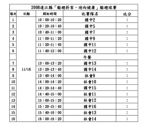 附加Excel文件表: matsu-fec4926d521614b41b3c144349d82a0c.xls11月16日賽程順序表