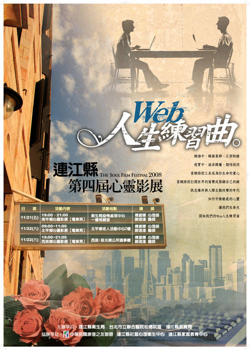 繼95年連江縣第三屆心靈影展(行經人生幽谷,我看見黎明)系列影片欣賞後,今年衛生局於11月21日至22日再次與台北市立聯合醫院松德院區、中華民國康復之友聯盟共同舉辦(網路人際關係)影片欣賞。