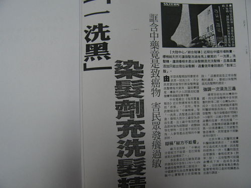 多款產品在化驗後更赫然發現其中含有1.1%-1.4%致癌染髮劑對苯二胺成分。中國國家化妝品質量監督檢驗中心實驗室主任張曉強說:「這濃度就是正常染髮劑的濃度。」戳破以染髮劑混充洗髮精的謊言。