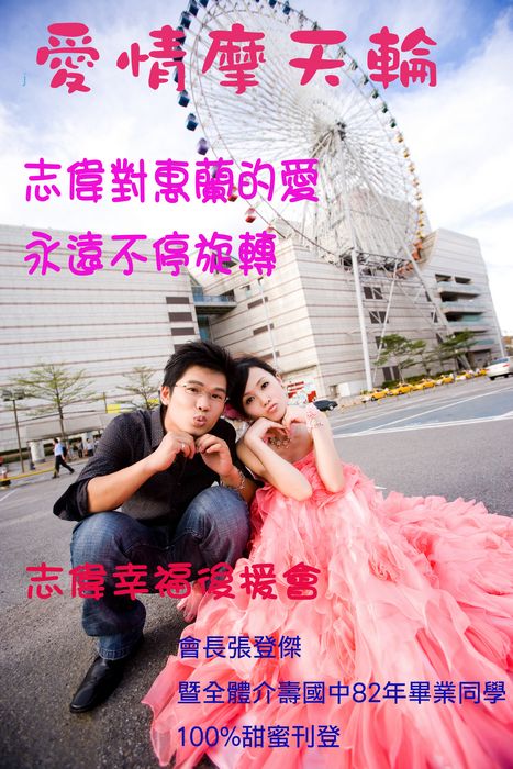 志偉恭喜你啦!愛情終於修成正果,幸福迎娶美嬌娘!還沒有結婚的同學都很羨慕你!