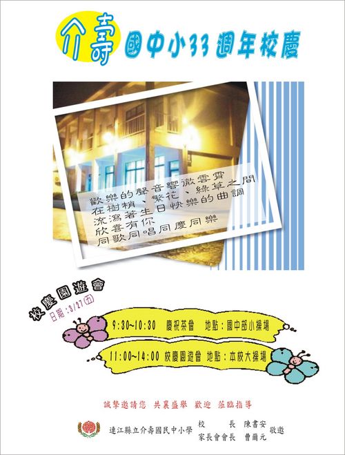 98.3.27介壽國中小33週年校慶園遊會歡迎您 --閱讀人次 : 2615 日期:98.3.27(五)