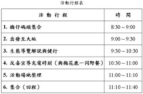 期盼藉由親近大自然,學習與大自然共處,了解「健康」必須身體力行,走出戶外多運動,遠離毒品,向毒品說不!