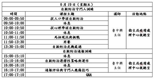 連江縣九十八年度自殺防治守門人訓練活動 --閱讀人次 : 1976 『自殺是可以預防的』,無論是國內外的資料都顯示,百分之50以上自殺身亡的個案,生前都曾經向身邊的親友間接或直接透露過;想要自殺的人,不是突發,只是我們的敏感度不夠。當身旁的人告訴你,需要您的幫忙時,請暫時放下手邊工作,聽聽他的聲音,或許您停下一分鐘就可以救了他一輩子。因此如何提升「守門人」的敏感度,針對這些人員加強自殺防治訓練,實為相當重要的一個議題。