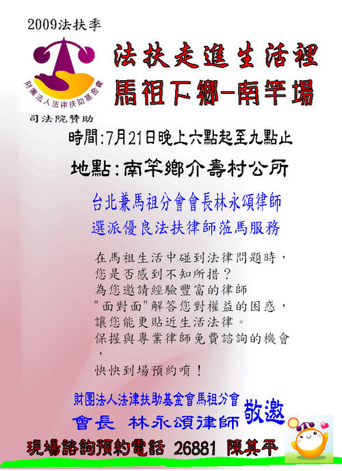 法扶下鄉-南竿場7/21晚與律師面對面