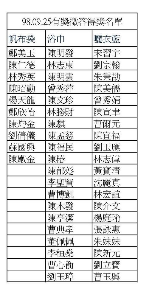 縣立醫院有獎徵答已於9/25下午抽出,中獎名單請參見下圖。
