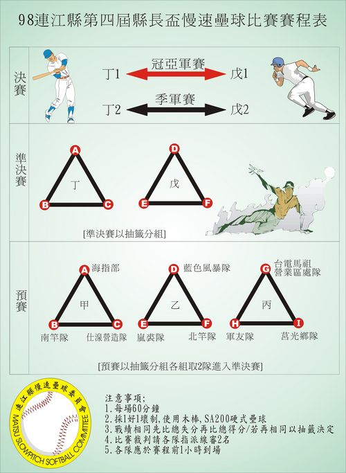 98第四屆縣長盃慢壘賽賽程表 --閱讀人次 : 2178 連江縣98年運動紮根計畫-整合性體育活動