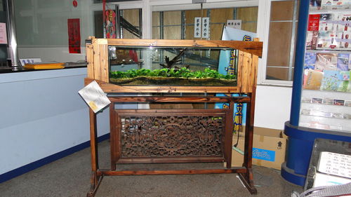 博雅甚稱製水族畫的翹楚,實木外框的觸感搭配著毛筆揮灑的中國書