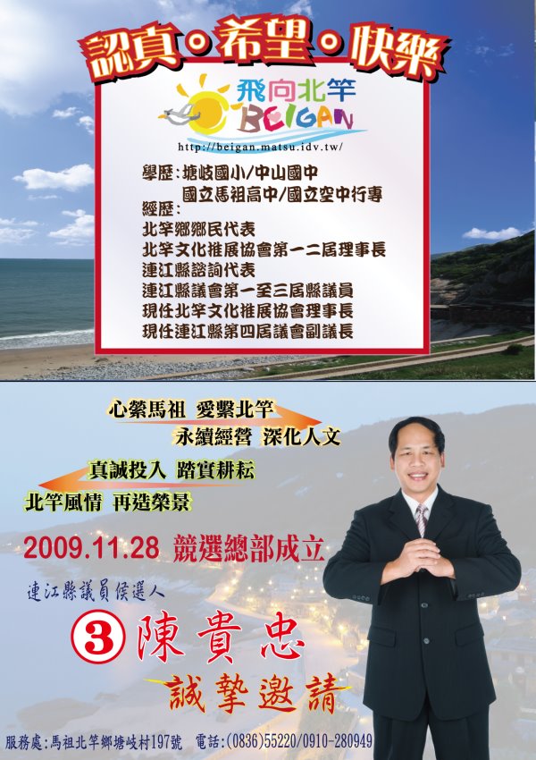 認真.希望.快樂/11月28日陳貴忠競選總部成立,誠執邀請 --閱讀人次 : 2037