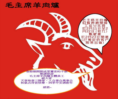 毛主席羊肉爐公告 --閱讀人次 : 2652