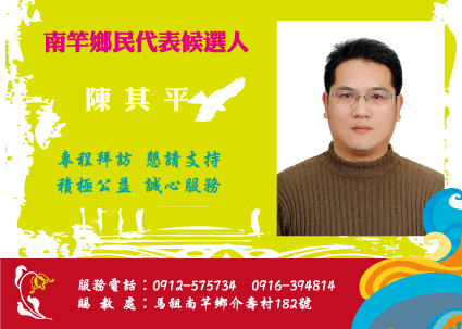 12號 南竿鄉代候選人陳其平 拜託