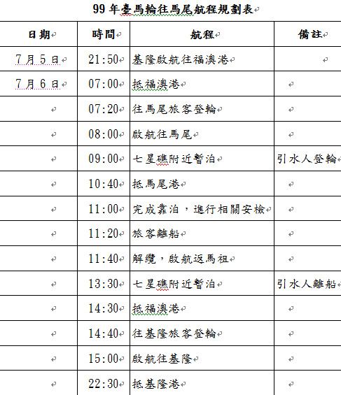 99年7月5日臺馬輪航班不經東引中柱港