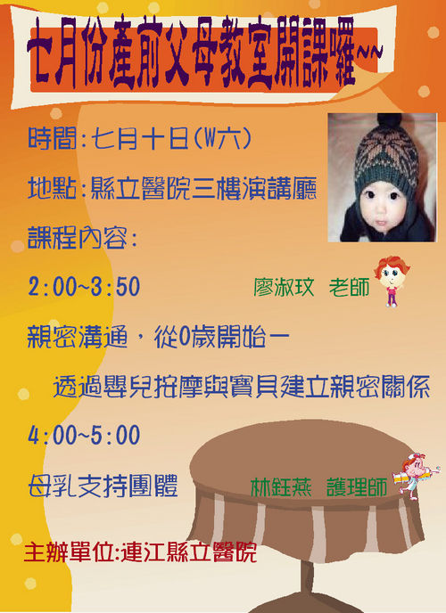 連江縣立醫院產前父母教室開課囉!! 歡迎準父母一起來參加∼