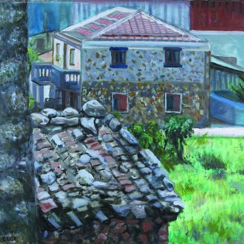 林星寶說,錦鴻的畫作呈現了馬祖過往的歷史,他服務馬祖的過程中,也與許多好朋友相互提攜,充實了彼此的藝文養分。這次展出的作品,林錦鴻說有三大主題,第一是馬祖的人、事、物,第二是歐洲的即景,第三是戰地政務以來馬祖的文化。他自謙地說,可能不加解釋會看不懂,但馬祖土生土長的人,對於畫中的孩囝、閩東瓦房可能會特別有感情。