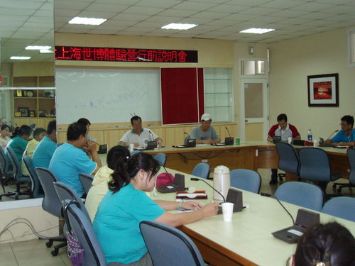 教育局8/14召開世博體驗營行程說明會,會中除了請旅行社對行程及注意事項作出說明外,局長邱金寶也再三叮囑所有團員務必要注意自身安全,不要擅自脫隊,由於上海天氣十分嚴熱,除了提醒大家作好防曬工作及補充水份外,也希望大家儘可能不要吃冰品。