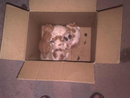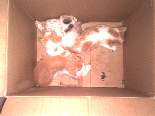 看的我覺得好可愛 本來4隻幼貓的眼睛都還沒張開!!