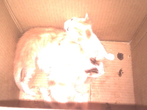 我看的實在是不忍心~趁那個主人回家去時再度把幼貓移到一個地方~