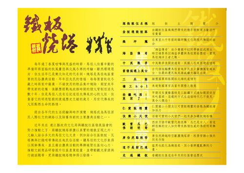 【記者劉秋月�南竿報導】不斷的創意,始能永續經營!今年鐵板燒塔踩街以「妝點歷史、走過從前」為創意構思,有十四隊報名參加,熾坪隴、中英戰爭、當倭寇遇到美女、佛朗明哥、唐伯虎點秋香等,從隊名根本無法猜測隊伍的裝扮,鐵板社區邀請您9/26下午三時三十分,一定要來鐵板親眼看看眾人的無限創意。