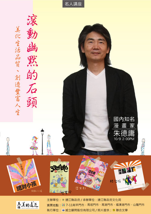 由國內知名漫畫家朱德庸先生主講「滾動幽默的石頭-美化生活品質、創造豐富人生」