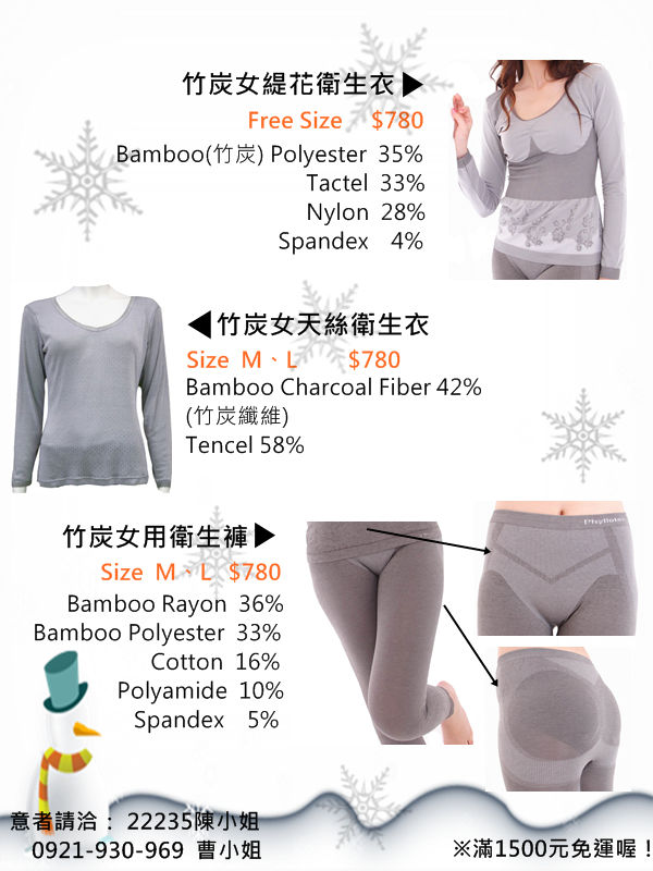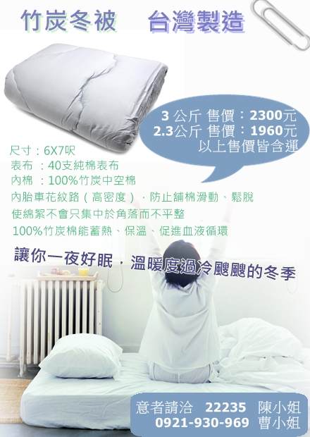 竹炭衛生衣褲、竹炭冬被 溫暖上市
