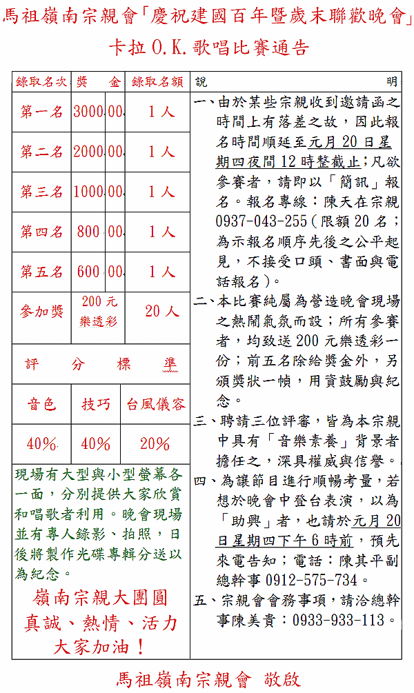 馬祖嶺南宗親會卡拉O.K.比賽-快訊