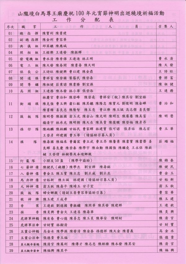 1.敬請鄉親踴躍參加,未分配工作鄉親者,請當天至現場分配工作。