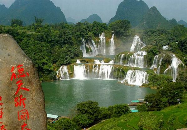 達邊陲重鎮——碩龍用中餐,後赴德天景區,沿途經過綠島行雲,抵達後遊覽德天跨國瀑布以及53 號界碑(徒步遊覽2 小時)。堪稱亞洲第一、世界第二大的德天跨國瀑布與緊臨的越南板約瀑布相連,同時還可觀賞到越南板約瀑布。遊覽結束返回酒店入住,沿途在碩龍鎮上利得好藥材展示中心(休息40 分鐘,自由選購中草藥材)。(早/中/晚)宿:碩龍大陽穀酒店或同級