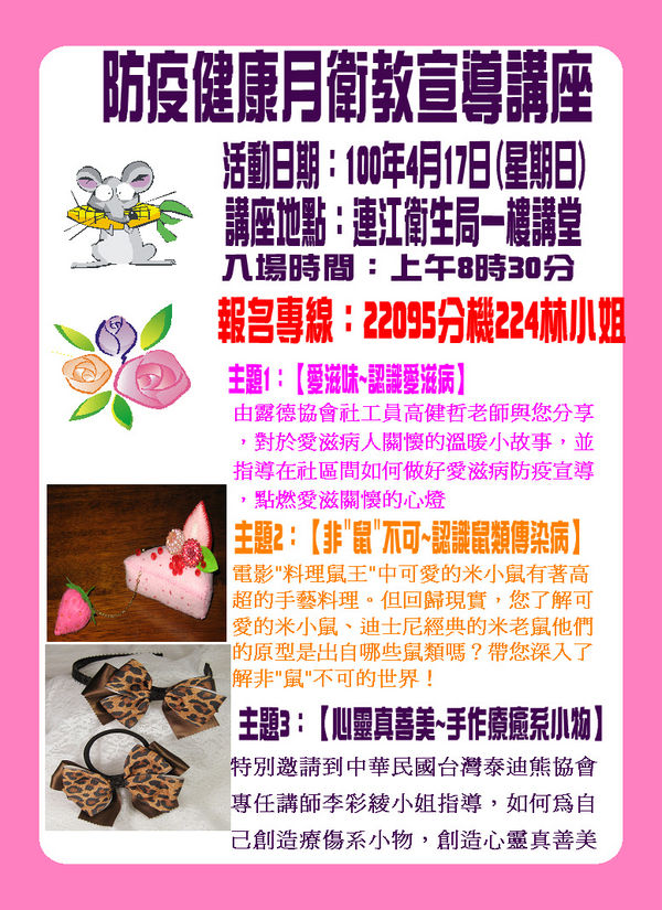 因天候不佳,講師不克前來,取消辦理,敬請見諒!