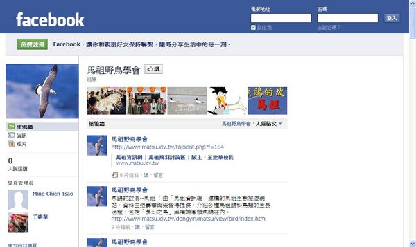 http://www.facebook.com/pages/%E9%A6%AC%E7%A5%96%E9%87%8E%E9%B3%A5%E5%AD%B8%E6%9C%83/139350302805645
