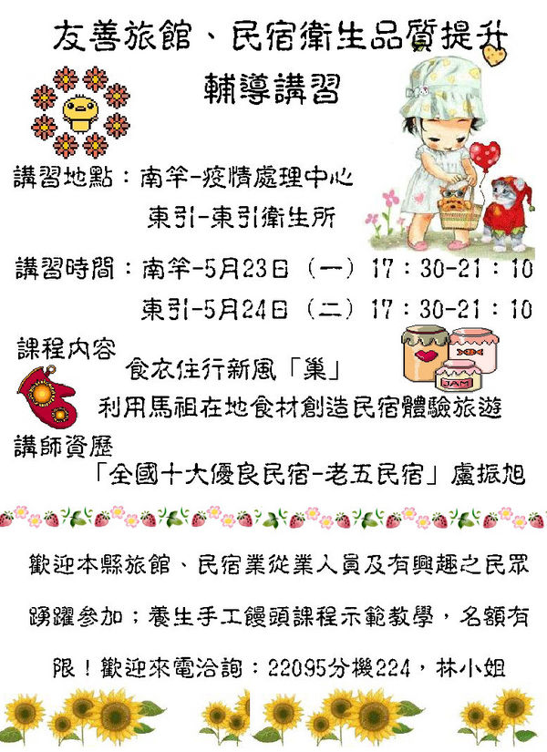 【如期舉行 】友善旅館、民宿衛生品質提升輔導講習