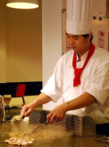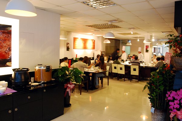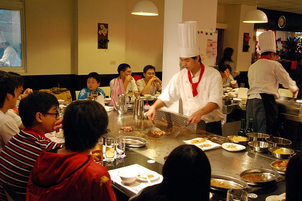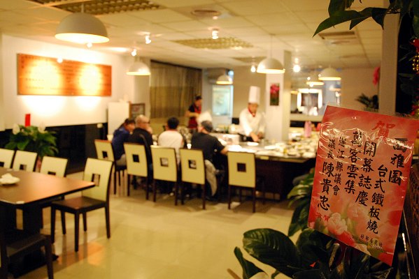 走進店內,散發香醇濃郁的香氣,高帽子配上白淨廚師服,繫上紅領巾,不細看還誤以為是電視裡的阿基師上菜。業者表示,廚師在服裝上有特別要求設計,要展現專業性的視覺,整間店坐滿約可容納40人,將廚房延伸至顧客眼前,透明化的方式一覽無遺,約莫十坪大的吧台,ㄇ字型的動線,主廚純熟的技藝展現在顧客眼前。店家選用新鮮食材,放上鐵板煎炒,滋滋響起的聲音觸動著味蕾,菲力牛肉油脂分布的恰到好處,鐵板豆腐微焦脆,內裡鬆軟的口感,讓許多饕客意猶未盡。