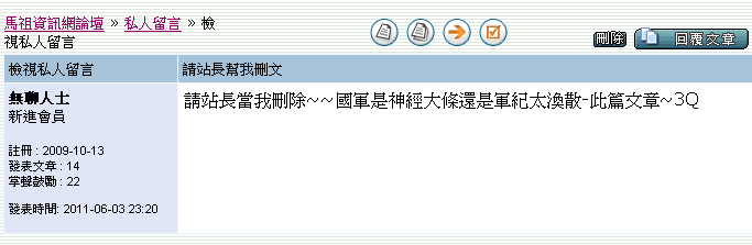 馬祖資訊網論壇 » 站務區 » 刪文留置區