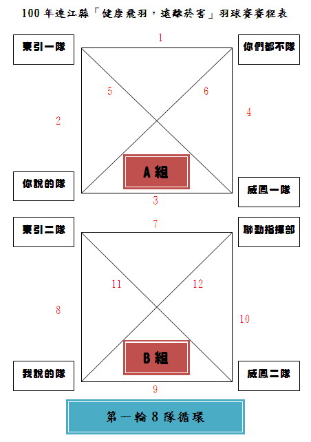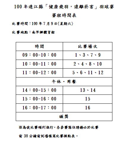 「健康飛羽,遠離菸害」羽球賽賽程