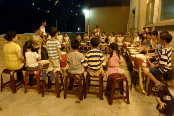 由連江縣政府民政局主辦「100年度暑期青少年休閒育樂活動計畫」,芙蓉海畫會承辦「敲敲打打玩非洲鼓創意研習營」有「鼓王」之稱的陳錦輝老師,教導馬祖小朋友非洲鼓,吸引近三十名小朋友參加,