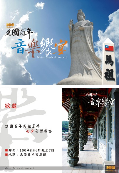 2011愛在七夕音樂會 七夕夜馬港浪漫開唱 --閱讀人次 : 1661 【記者劉秋月�南竿報導】2011愛在七夕音樂會,文化局將於七夕夜(八月六日)晚間七點半於馬港海天酒店前戶外廣場浪漫舉辦,歡迎鄉親共同參與,將心中滿滿愛意親手寫下明信片,與最愛的他(她)一同享受一場浪漫的音樂饗宴。