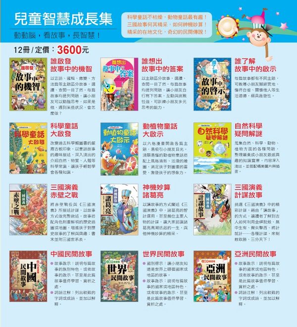 3.故事最後有機智大啟發單元,說明各篇故事的重點與意義,讓家長輕鬆的陪讀。