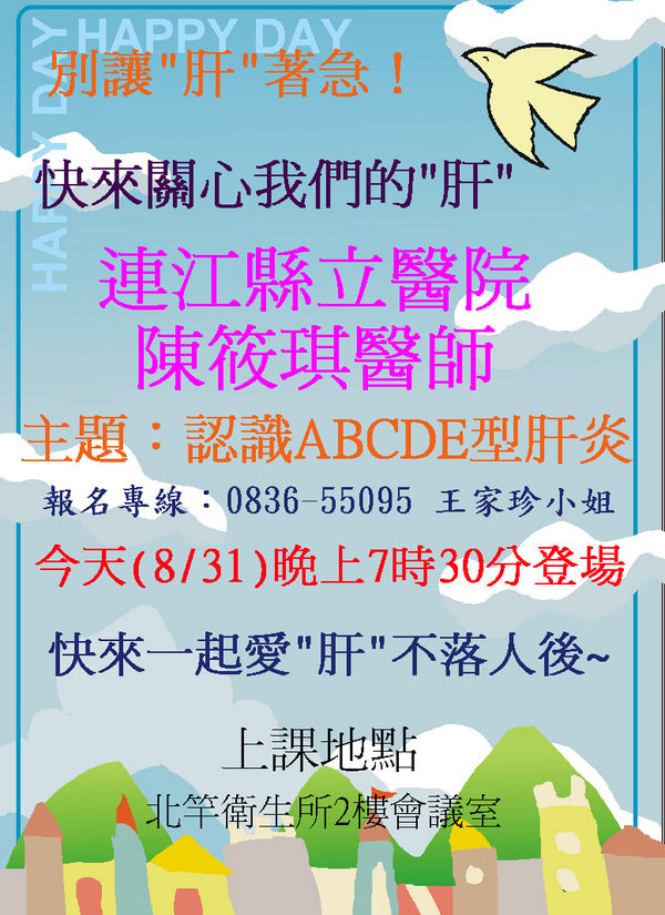 【別讓"肝"著急,大家一起來愛肝】今晚7:30北竿衛生所登場