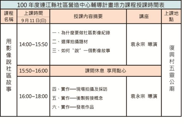 9/11 復興村五靈公廟 用影像說社區故事 --閱讀人次 : 1866 連江縣社造中心培力課程:用影像說社區故事