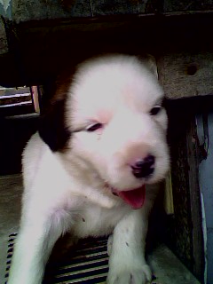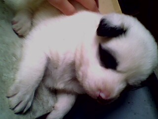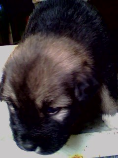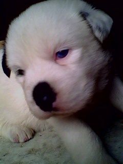 這一隻是7隻唯一的母狗喔,眼睛是深藍色的,也是最小隻的,但是照片拍的不是很清楚