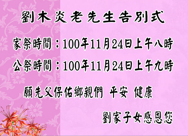 感謝馬祖鄉親送先父劉木炎老先生最後一程