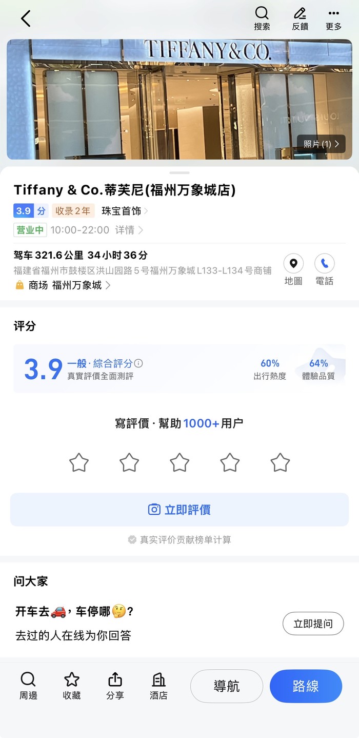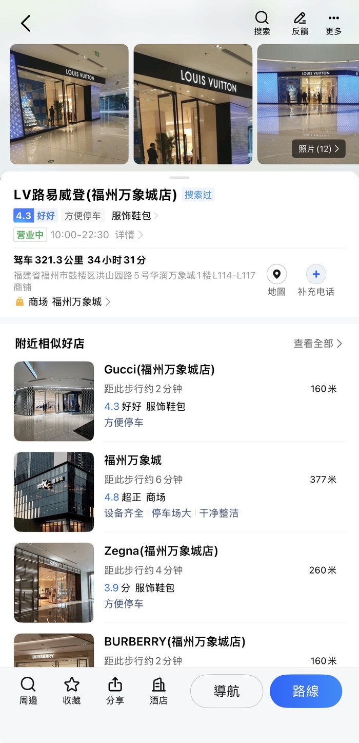 福州東百中心東方百貨、大洋百貨、天虹百貨、萬象城LV 福州鼓樓區店、Tiffany珠寶福州分公司也列入福州市離境退稅的店家