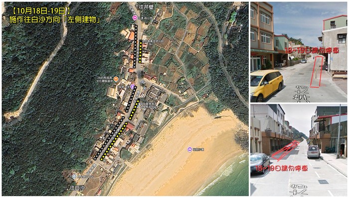 為了您的愛車考量,煩請村民將愛車依以下日期移至其他未施工區域停放,造成您的不便,敬請鄉親見諒!