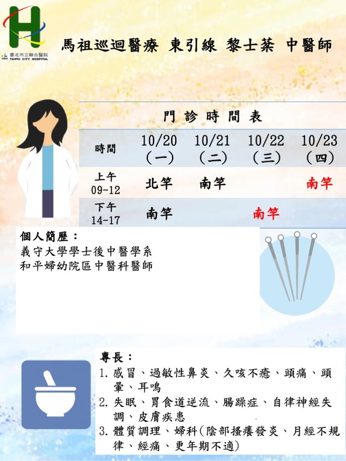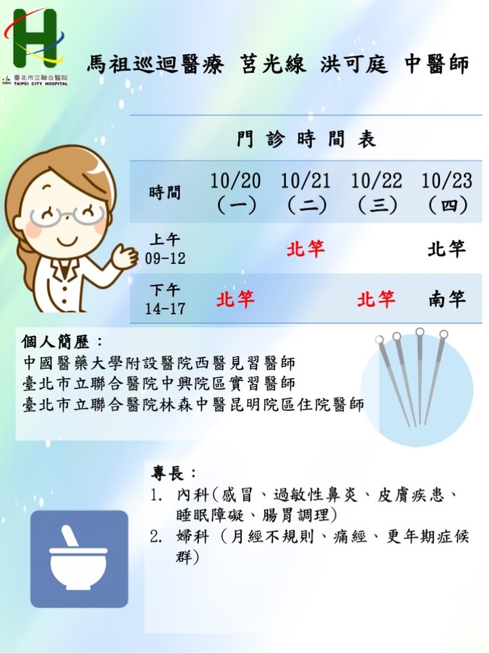 更新馬祖中醫巡迴醫療114/10/20-10/23