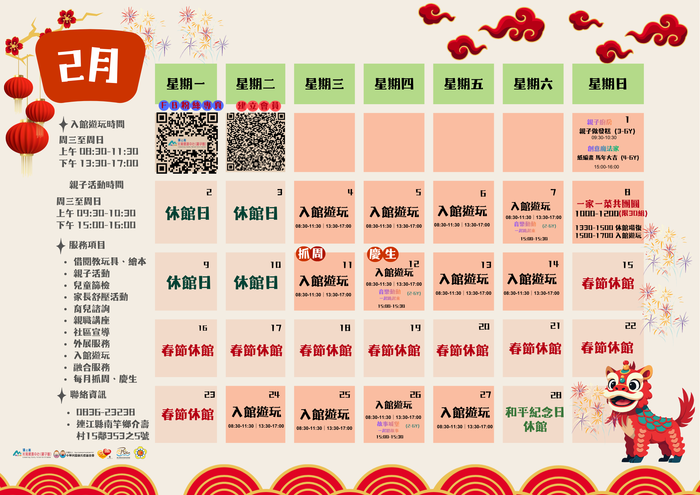 📢 【二月份行事曆出爐!春節假期與活動看過來】