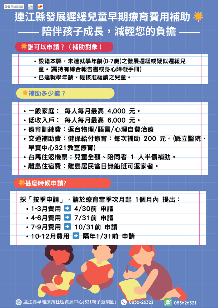 115年第一季(115年01月-115年03月)療育補助申請即將開始!