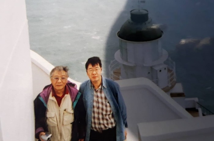 圖左楊樹清、圖右鄭愁予,攝於東引島燈塔
