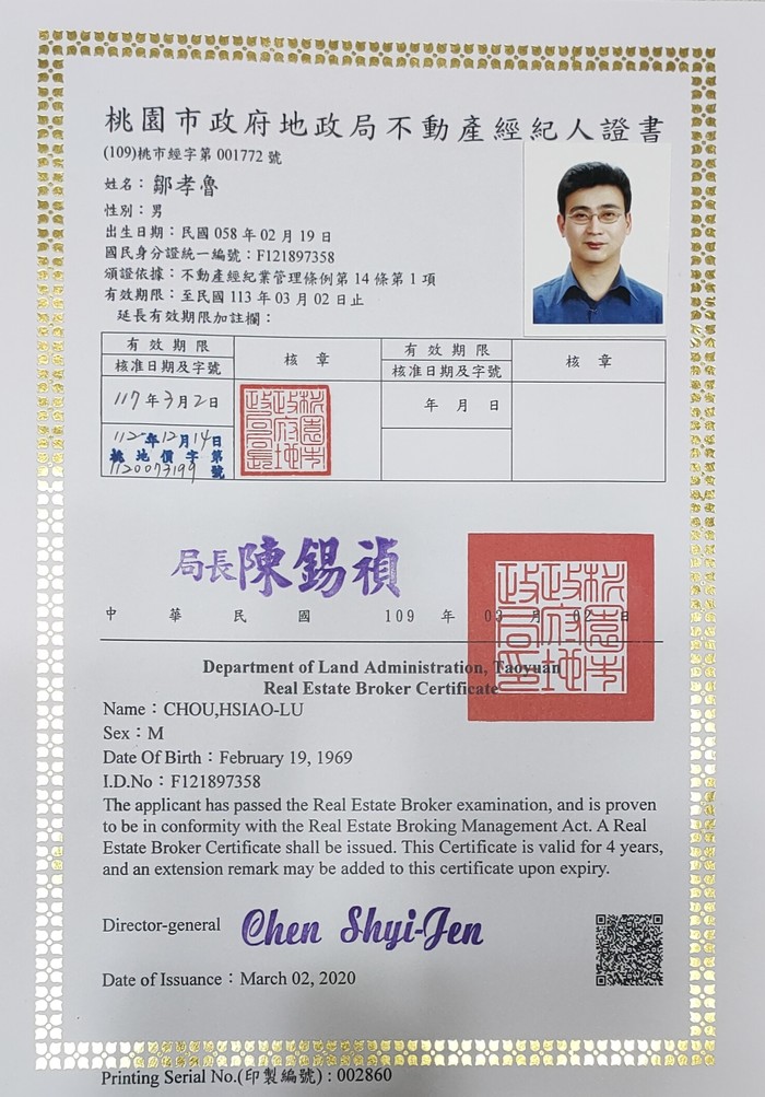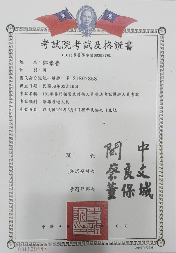 鄒孝魯地政士除經過國家考試取得地政士資格外,更具有國家考試之不動產經紀人,導遊及領隊考試及格證書,擁有地產黃金雙證照及旅遊黃金雙證照,除了是一位多材多藝的專業地政士外,更是一位風趣幽默的諮詢人員