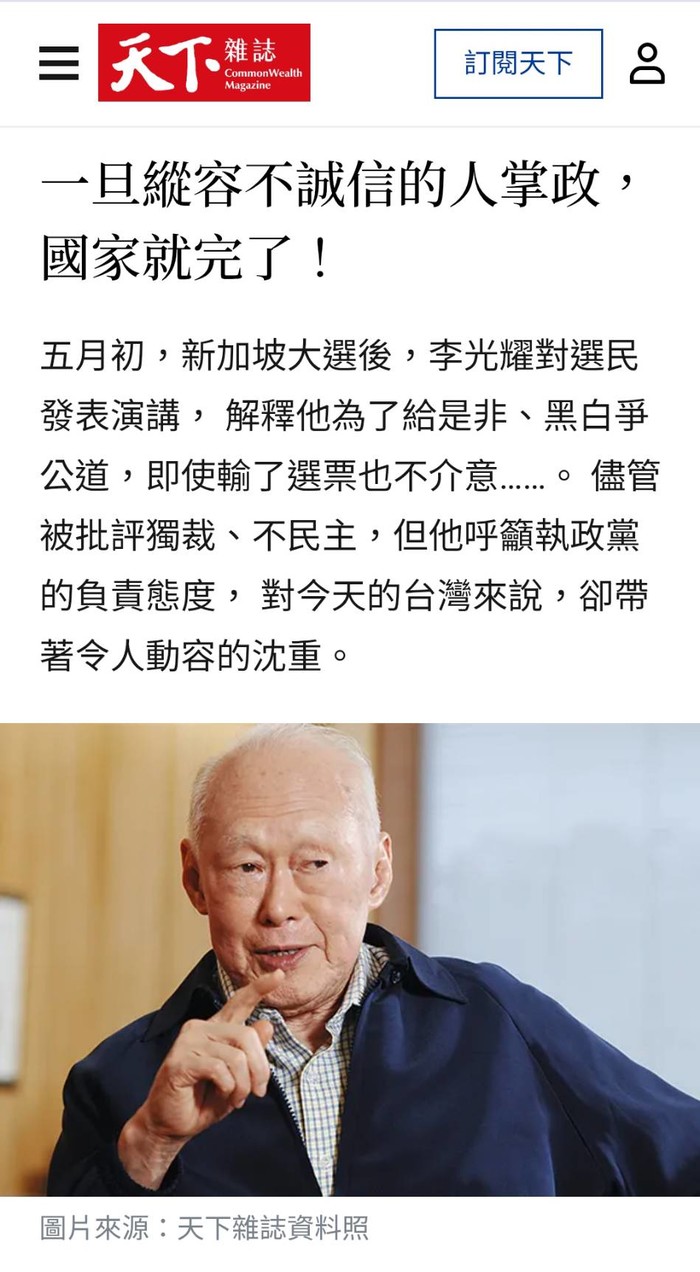李光耀曾言:「一旦縱容不誠信的人掌政,國家就完了!」此言或許嚴厲,卻揭示了政治信任的重要性。假如王忠銘深信馬祖非他不可,決定繼續參選,理應誠懇交代為何背棄「只做一屆」的初衷,重新爭取民意授權,而非故弄玄虛,消耗民眾的耐心。