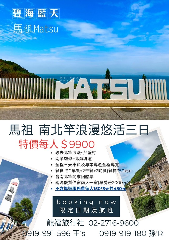 2025 馬祖旅遊精選行程,四月限定優惠! --閱讀人次 : 552 碧海藍天 | 浪漫馬祖三日遊 💙