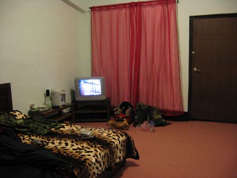 後來換到雙人房...貴了點!!一晚要2200元 有附早餐 被被很舒服喔!!好軟又是豹紋滴^^